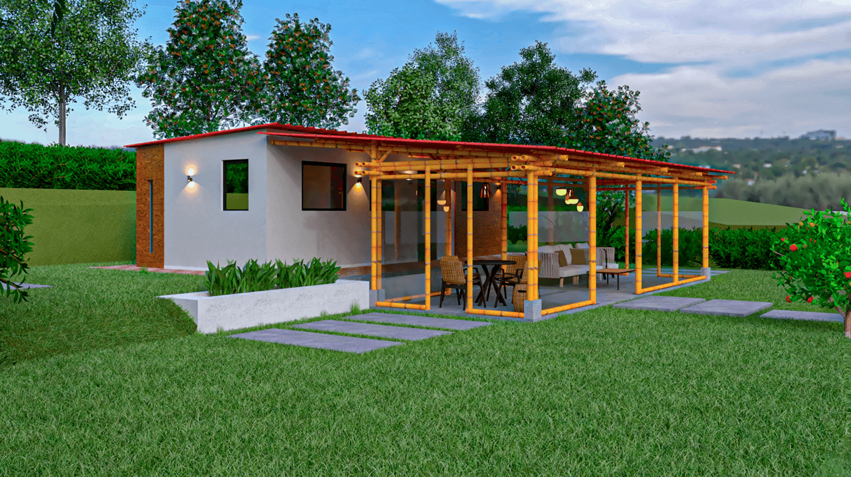 Proyecto localizado en el área rural de Popayán, sobre la vereda Calibio, se trata de una mejora arquitectónica a una estructura en mal estado existente, donde por indicaciones del cliente quiere que se mantenga el espacio y que sea un lugar de relajamiento, en su parte posterior, se alza una estructura en guadua, que se contextualiza con el entorno en el que se encuentra un espacio de disfrute y relajación.
