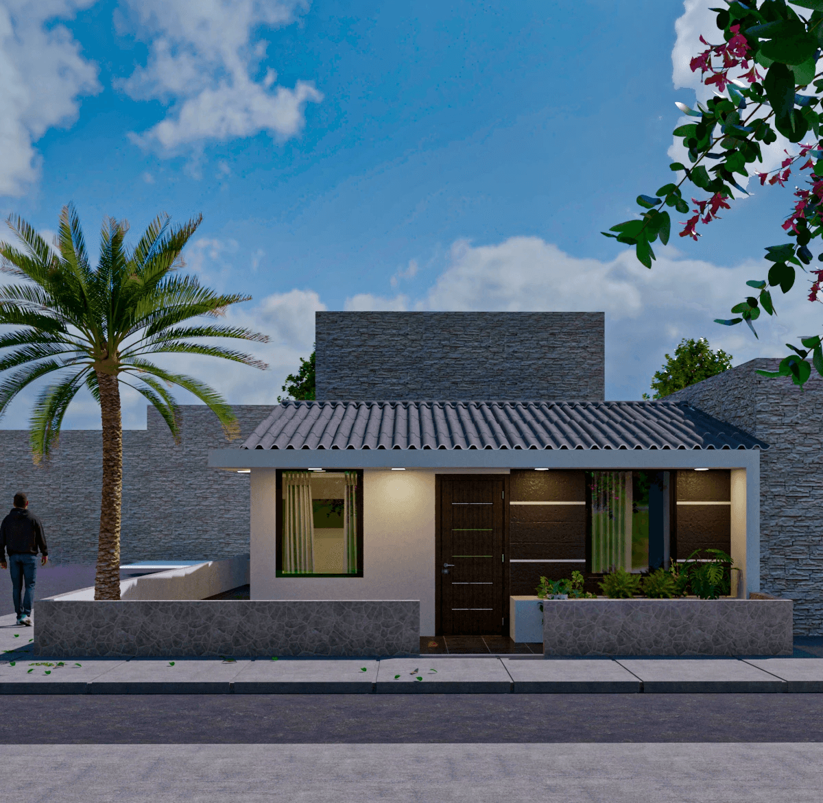 Remodelación de vivienda en la ciudad de Popayán, con futura ampliación, donde se busca generar una relación con su espacio exterior, donde su fachada abre paso a una serie de plantas que a gusto de cliente quería que se acoplaran con la fachada, su espacio interior se sintetiza en un área amplia donde se recibe a las personas, con matices de color blanco y negro, reflejando la simplicidad en relación con su fachada.